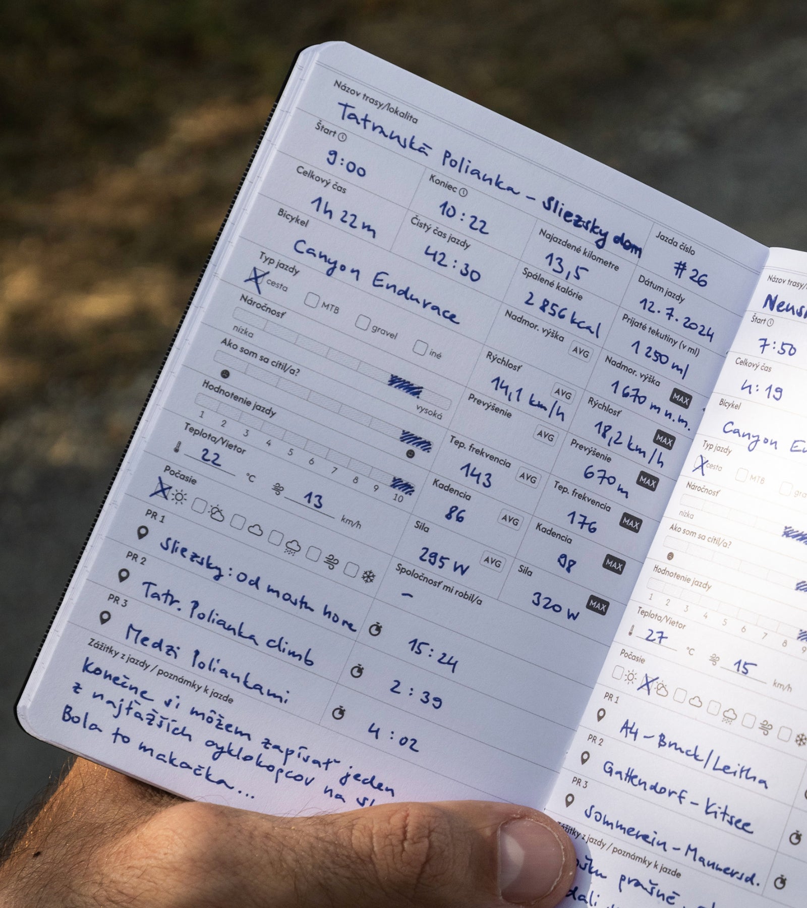 Posuň sa v bicyklovaní na novú úroveň a sleduj svoje pokroky cez zápisky o jazdách v praktickom denníku. Zmestí sa ti aj do vrecka, takže nič dôležité ti neunikne. V kuloároch sa šepká, že k Cyklodenníku pribudnú čoskoro aj novinky pre bežcov a milovníkov slovenských cyklokopcov!